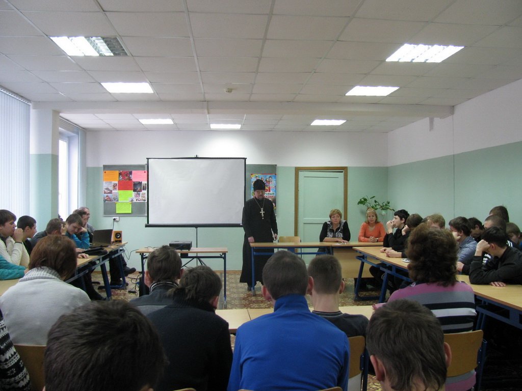 15 декабря в профессиональном училище № 58 деревни Кабаново Орехово-Зуевского района прошла встреча преподавателей и учащихся с настоятелем Никитского храма деревни Кабаново протоиереем Николаем Пироговым. На встрече были затронуты проблемы современной молодежной жизни, выступали представители муниципальных и общественных организаций, автономного учреждения «Центр гражданско-патриотического воспитания молодежи «Спектр».