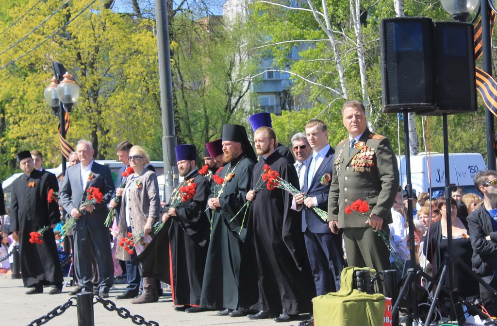 В торжественном шествии к обелиску «Памяти павших» и монументу «Вечный огонь» приняли участие Г. О. Панин, члены администрации города, протоиерей Андрей Коробков, священнослужители благочиния, представители местных предприятий, учреждений образования, здравоохранения, культуры, казачества.