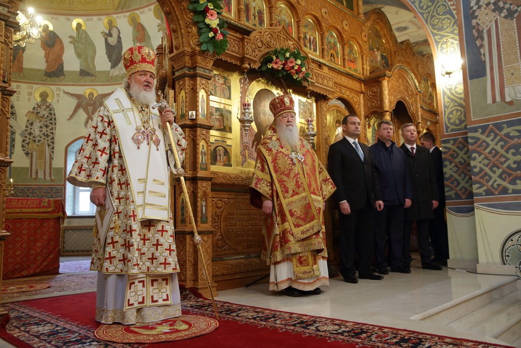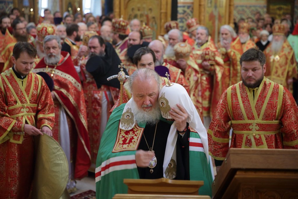После сугубой ектении Предстоятель Русской Православной Церкви вознес молитву о мире на Украине.