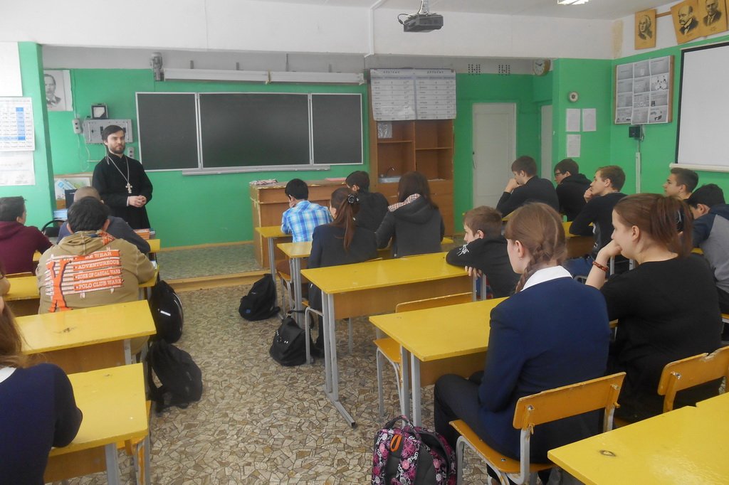 19 мая настоятель Спасского храма села Петровское священник Анатолий Чистов посетил среднюю общеобразовательную школу села Огуднево. В рамках уроков «Основы православной культуры» и «Духовное краеведение Подмосковья» священник ответил на вопросы учеников о православной вере.