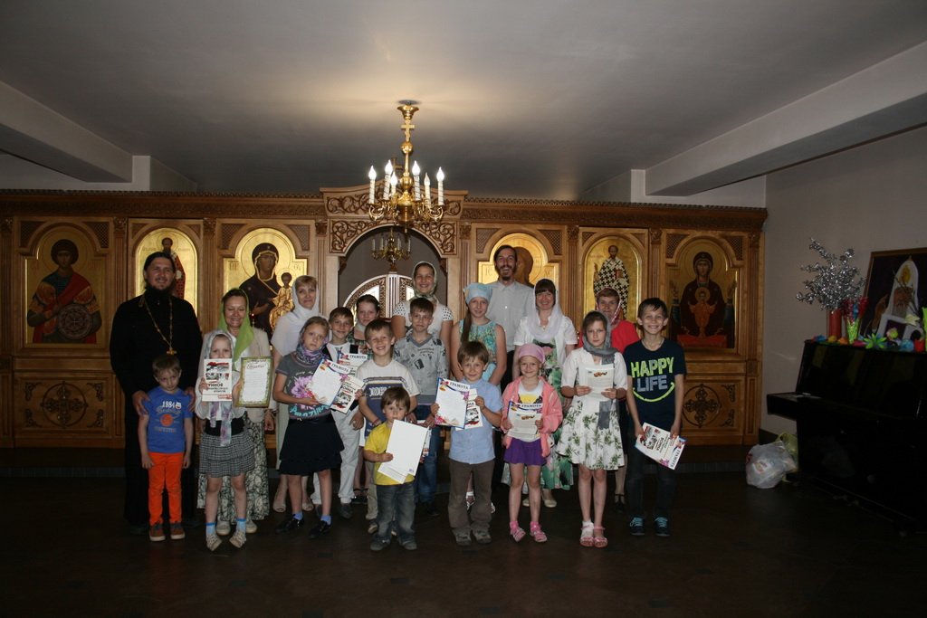 4 июня, в воскресной школе храма Новомучеников и исповедников Орехово-Зуевских состоялось окончание учебного года и подведение итогов. Воспитанников школы поздравили клирик храма священник Петр Туря и директор воскресной школы Г. И. Колычева.