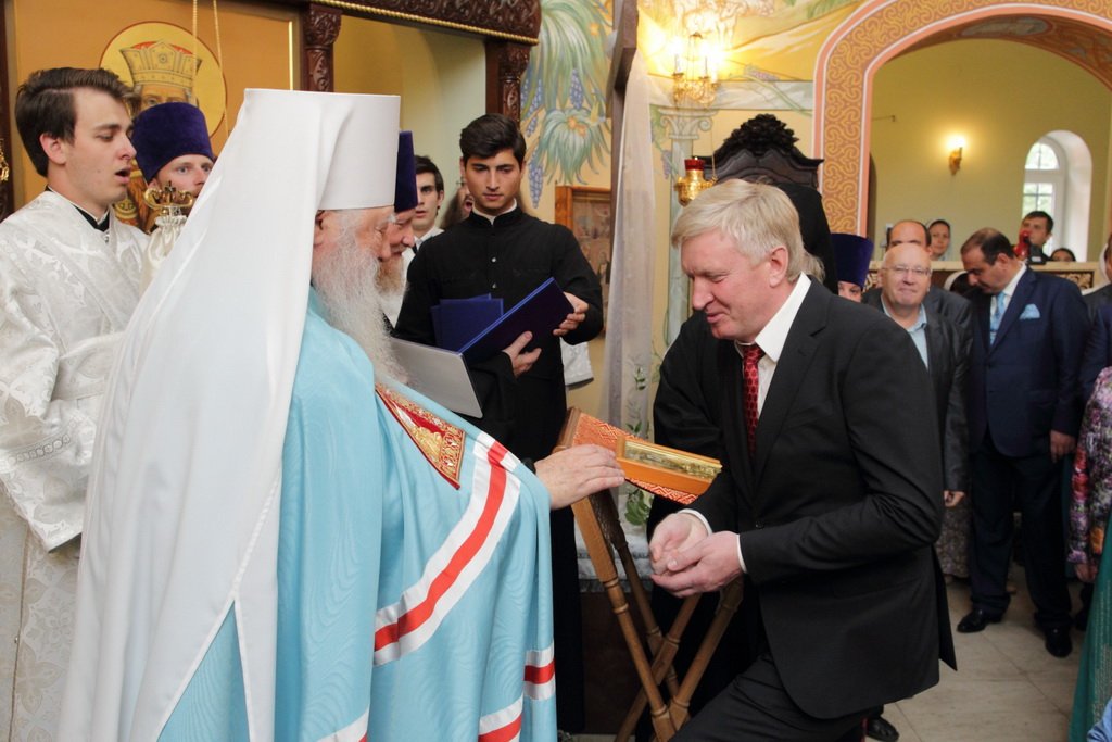 «Ваше Высокопреосвященство! Действительно, как сказал настоятель этого храма, всего лишь 10–12 лет назад на этом месте росли камыши и межмуниципальное кладбище Щелковского района Фрязино имело, скажем прямо, страшный вид. Сюда даже было страшно приходить. Здесь лежат наши друзья, родственники, родители, близкие, с кем мы еще недавно работали. Поэтому возникла идея построить здесь часовню. Хватило воли руководителя и участия людей, которые могли себе позволить и жертвенно позволяли построить на этом месте часовню, которая родилась в этот прекрасный храм. Мне очень приятно, что, завершая свою политическую карьеру, мне посчастливилось 15 лет, и судьба была благосклонна для того, чтобы я работал с такими великими людьми, как Борис Всеволодович Громов, с Вами, с новыми руководителями области. Я считаю это великим счастьем и испытываю благодать от того, что в этот храм приходят наши фрязинцы, щелковцы, что он все время наполнен людьми, и мне представляется, что дальше он будет все больше и больше наполняться нашими людьми, и отсюда они будут выходить более добрыми, милосердными, патриотичными с большой любовью к нашей Земле. Спасибо большое Вам, Ваше Высокопреосвященство, для меня было счастьем с Вами общаться и работать».