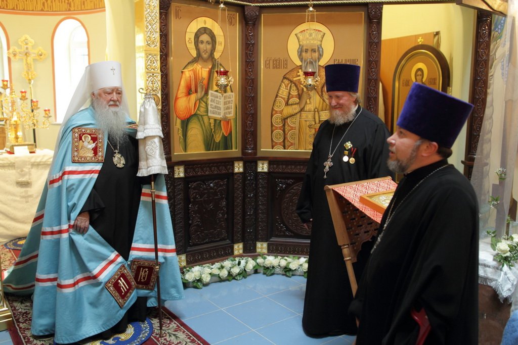 После богослужения к Его Высокопреосвященству с приветственным словом обратился настоятель храма священник Виктор Долгих: