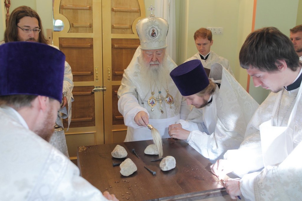Во время Божественной литургии, на малом входе митрополит Ювеналий во внимание к усердным трудам по строительству