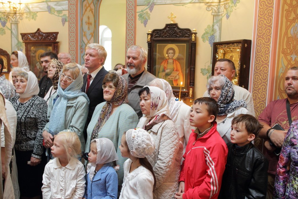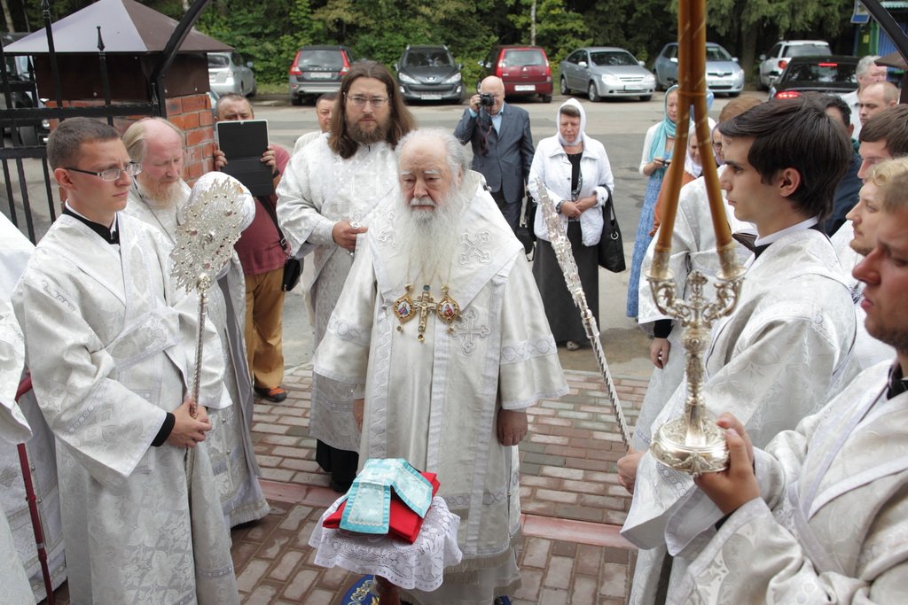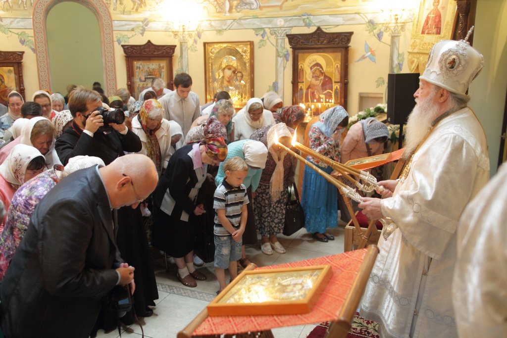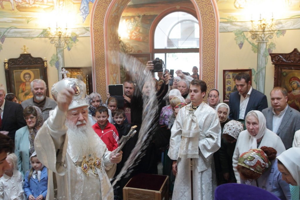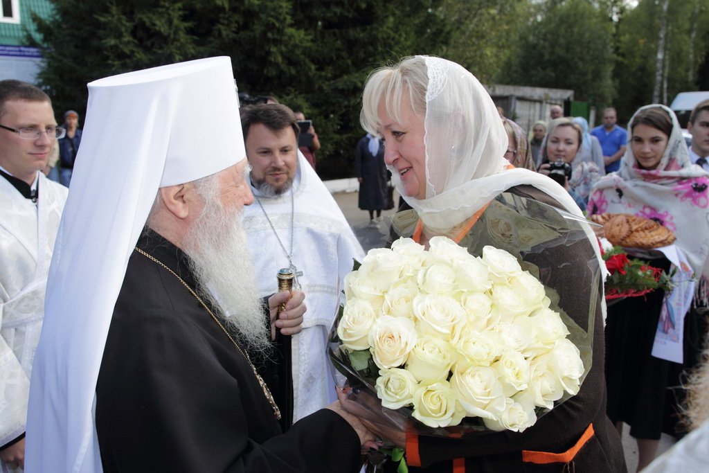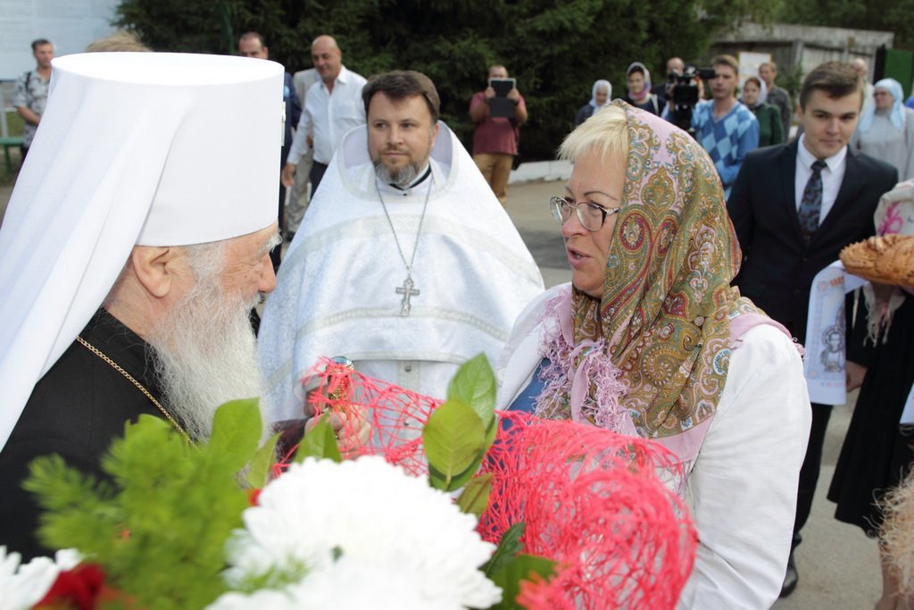Я хотел бы горячо и сердечно поблагодарить и духовенство во главе с отцом благочинным, и власти, и всех вас, дорогие братья и сестры, которые присутствуют здесь и которых нет, но кто своими молитвами, усердием и жертвами помогали приближению этого благословенного для нас счастливого исторического дня. Я тоже, в свою очередь, хотел бы попросить вас принять этот образ Крестителя Руси — святого равноапостольного великого князя Владимира с тем, чтобы в престольные праздники на аналое вы видели этот образ и молились святому о себе, о своих близких, о нашей Церкви и о вашем митрополите. Примите от меня это как благословение в этот исторический день.