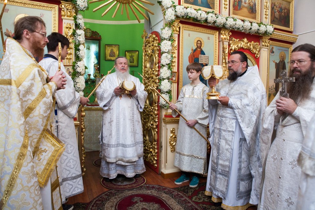 За Литургией пел хор духовенства Балашихинского церковного округа под руководством священника Димитрия Огнева. После сугубой ектении Владыка Николай вознес молитву о мире на Украине. После богослужения Владыка Николай вручил награды Московской епархии усердным труженикам и благотворителям храма.