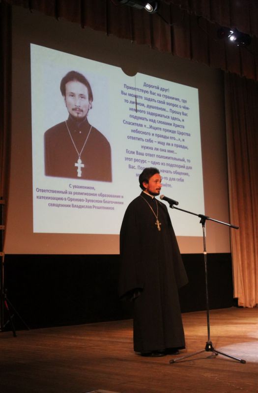 2 декабря в центре культуры и досуга «Мечта» г. Орехово-Зуево состоялись VII городские Рождественские образовательные чтения «Традиции и новации: культура, общество и личность». Организаторами мероприятия стали управление образования г. Орехово-Зуево и Орехово-Зуевское благочиние. На празднике выступили детский хор «Благая весть» Богородицерождественского собора г. Орехово-Зуево, хореографический коллектив «Комсомолия», студенты Государственного гуманитарно-технологического университета (ГГТУ) г. Орехово-Зуево «Экспромт», учащиеся общеобразовательной школы № 18, хореографические и певчие коллективы города. На чтениях были представлены тематические доклады учителя общественных дисциплин школы № 18 Е. П. Жигуновой, учителей и воспитанников воскресной школы храма Новомучеников и исповедников Орехово-Зуевских, студентки ГГТУ И. С. Парфеновой. На мероприятии присутствовали руководитель администрации г. Орехово-Зуево Е. В. Баришевский, благочинный Орехово-Зуевского церковного округа протоиерей Андрей Коробков, заместитель начальника управления образования г. Орехово-Зуево Г. В. Балашова, ответственный за религиозное образование и катехизацию в благочинии священник Владислав Решетников, проректор по воспитательной работе ГГТУ А. В. Рябцев, а также духовенство Орехово-Зуевского благочиния, педагоги и воспитанники воскресных школ, директора, педагоги и учащиеся образовательных учреждений г. Орехово-Зуево. Грамотой Государственного гуманитарно-технологического университета города Орехово-Зуево за развитие социального партнерства в области духовно-нравственного просвещения и приобщения молодежи к традиционным ценностям, решения социальных и культурных задач в области воспитания студентов был награжден протоиерей Андрей Коробков. Центральным событием праздника стало открытие нового социального проекта «Разговор по душам», разработанного совместно Орехово-Зуевским благочинием и управлением образования г. Орехово-Зуево. В завершение торжества грамоты Орехово-Зуевского благочиния были вручены преподавателям общеобразовательных учреждений, трудящимся в деле духовно-нравственного просвещения и образования.