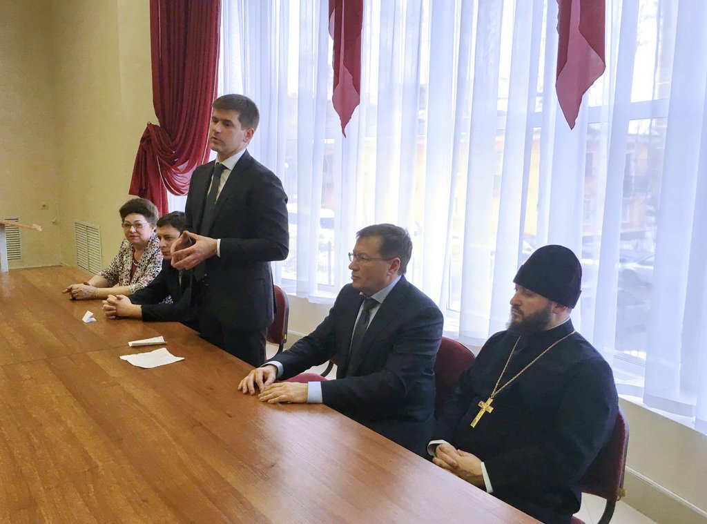 9 февраля глава г. Орехово-Зуево Г. О. Панин и благочинный Орехово-Зуевского церковного округа протоиерей Андрей Коробков посетили управление социальной защиты населения г. Орехово-Зуево. На встрече присутствовали также начальник Орехово-Зуевского отдела соцзащиты И. А. Максимова, депутат Московской областной Думы Э. Н. Живцов, заместитель руководителя администрации г. Орехово-Зуево П. Н. Родин, ответственный за благотворительность и социальное служение в благочинии протоиерей Андрей Зозуля, ответственный за защиту материнства и детства протоиерей Алексий Левченко. В ходе встречи обсуждались вопросы социального обеспечения и духовного окормления малоимущих семей города.