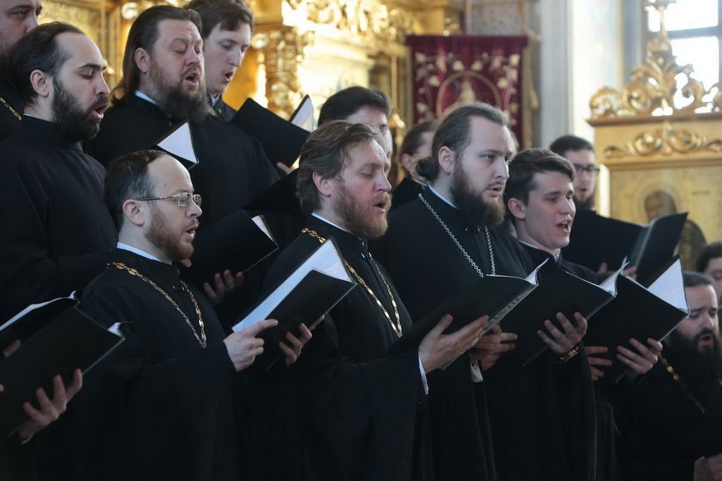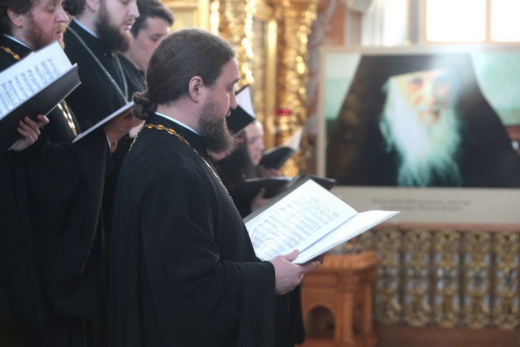 Перед началом конференции хор духовенства Московской епархии под управлением священника Сергия Голева исполнил несколько духовных песнопений, связанных с богослужебной традицией Святой Горы.