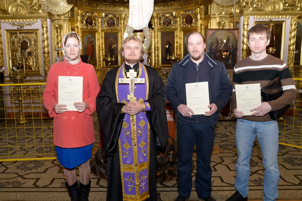 17 апреля в Никольском храме г. Лосино-Петровского состоялся выпуск Щелковского отделения Епархиальных миссионерско-катехизаторских курсов, перед началом которого куратор Щелковского отделения, благочинный церквей Лосино-Петровского округа священник Павел Галушко совершил благодарственный молебен.