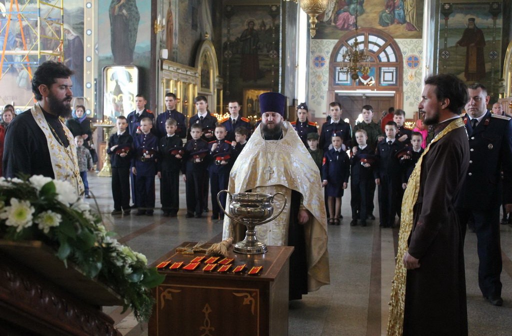 27 апреля в Богородицерождественском соборе г. Орехово-Зуево состоялась торжественная церемония вручения погонов воспитанникам казачьей кадетской школы г. Орехово-Зуево. После благодарственного молебна и освящения погонов, которое совершил благочинный церквей Орехово-Зуевско округа протоиерей Андрей Коробков в сослужении ответственного за взаимодействие с казачеством священника Александра Воронцова, атаман городского казачьего общества В. М. Ехин вручил погоны кадетам. Присутствовали члены городского казачьего общества, воспитанники казачьей школы и их родители. В завершении мероприятия отец Андрей обратился к юным кадетам с поздравительным словом.