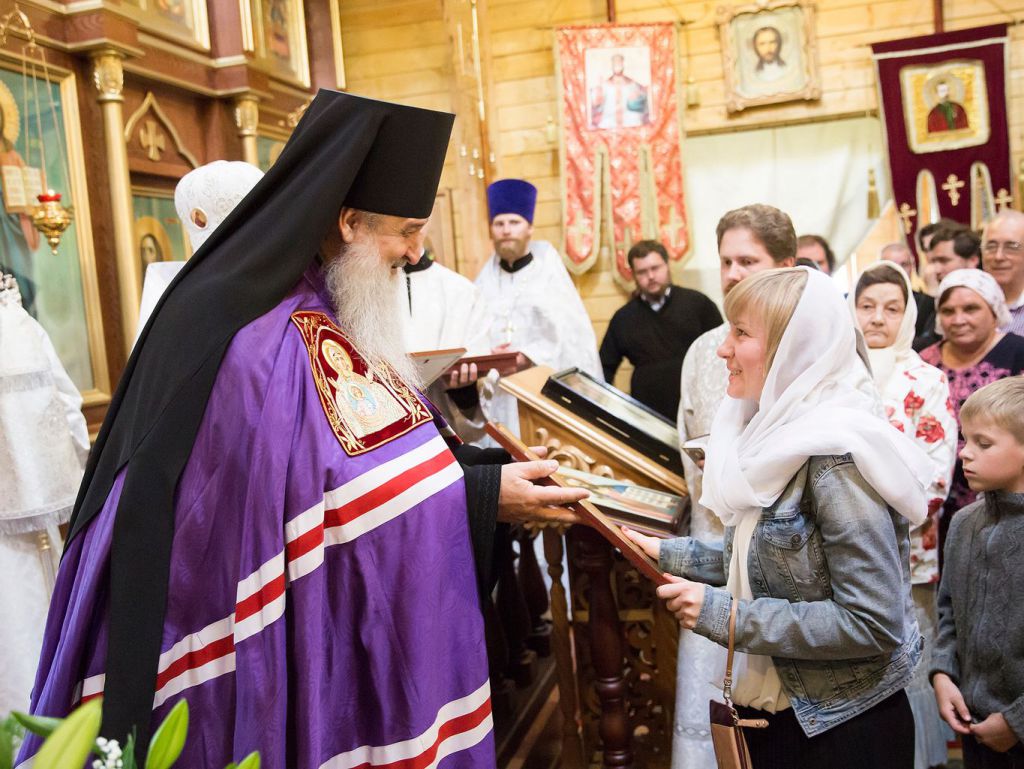 По окончании богослужения протоиерей Виктор Догадаев передал Владыке Роману икону прп. Серафима Вырицкого для митрополита Ювеналия. Епископ Роман обратился к собравшимся с приветственным словом, после чего вручил награды потрудившимся в деле созидания храма: протоиерей Виктор Догадаев был награжден медалью Московской епархии «За усердное служение» I степени, протоиерей Александр Шкуренко — медалью «За усердное служение» III степени, предприниматель
