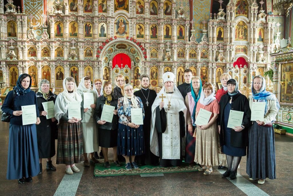 12 июня в Троицком соборе г. Щелково благочинный церквей Щелковского округа протоиерей Андрей Ковальчук совершил благодарственный молебен и вручил слушателям Библейско-богословских курсов имени прп. Сергия Радонежского свидетельства об их окончании.