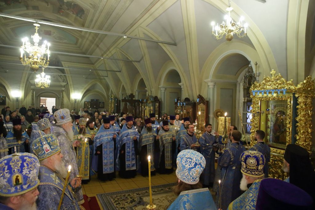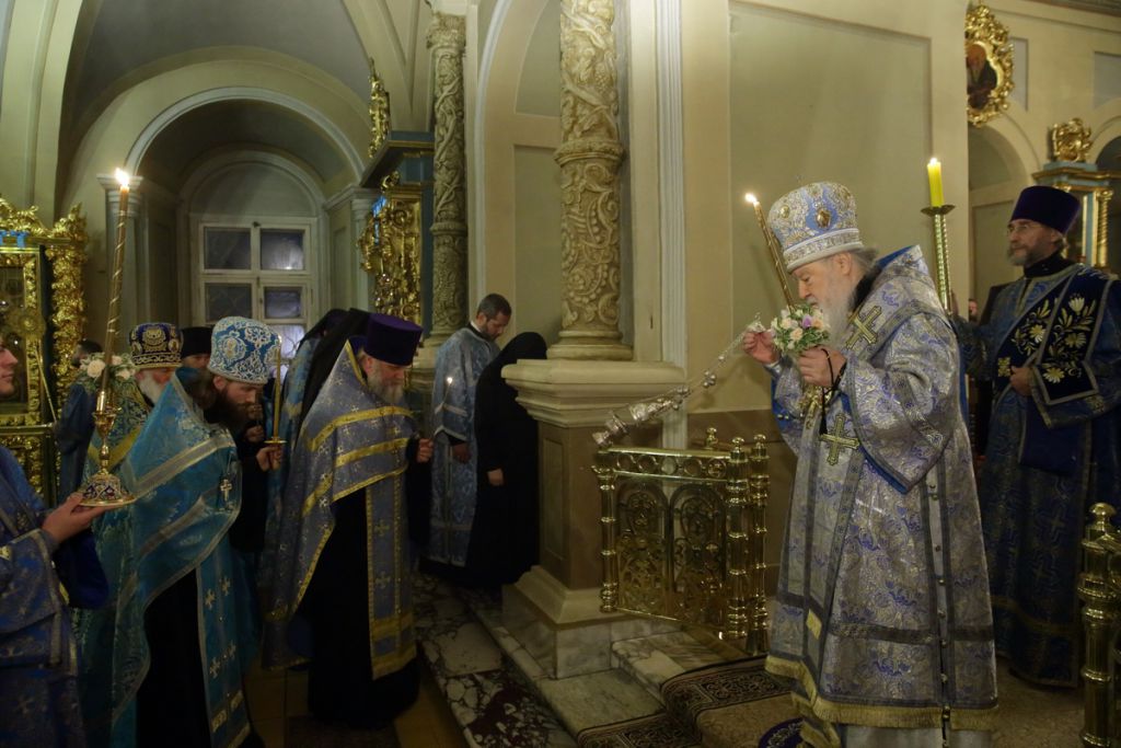 25 октября, накануне праздника в честь иконы Божией Матери «Иверская», митрополит Ювеналий в сослужении викариев и духовенства Московской епархии совершил всенощное бдение в Успенском храме Новодевичьего монастыря, где находится древнейший в России список Иверской иконы Божией Матери, принесенный со Святой Горы Афон в 1648 году.