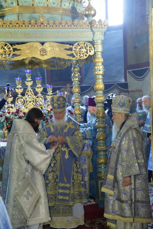 Пусть Покров Царицы Небесной и ныне пребывает над Отечеством нашим, над всей исторической Русью. Да примирит Царица Небесная Своей материнской любовью чад Своих в России, Украине, в иных местах пребывающих. Да дарует Она нам надежду на то, что по молитвам святых, в земле нашей просиявших, Ее милость, Ее материнское заступление пред Сыном Ее и Богом нашим всегда будут действенными в ответ на наши смиренные молитвы и на нашу искреннюю веру. Аминь».