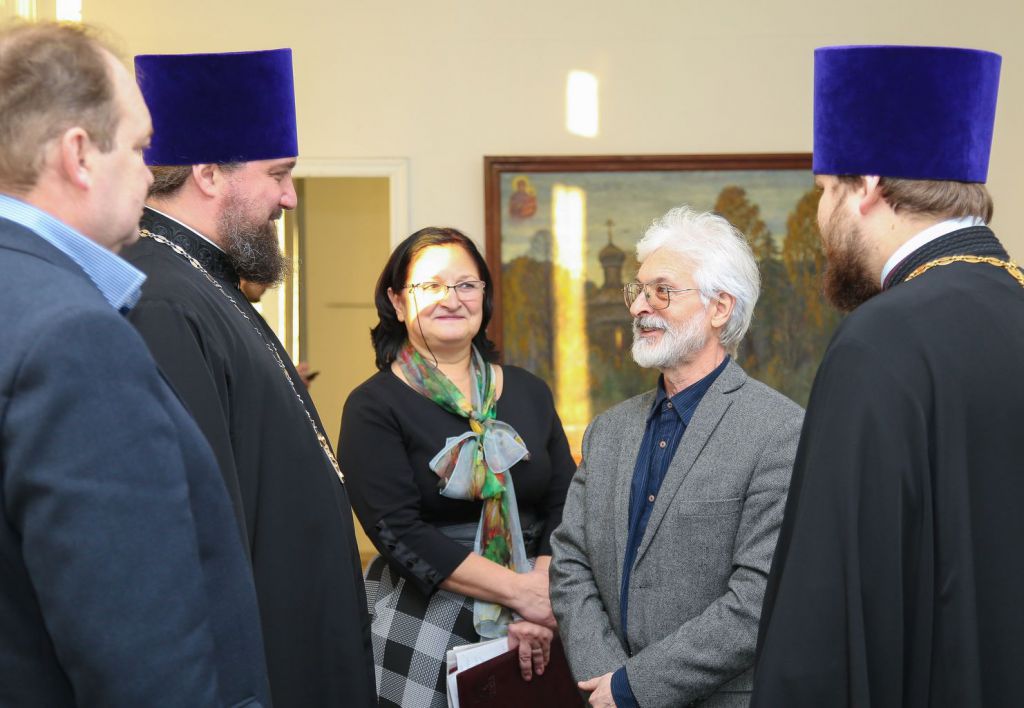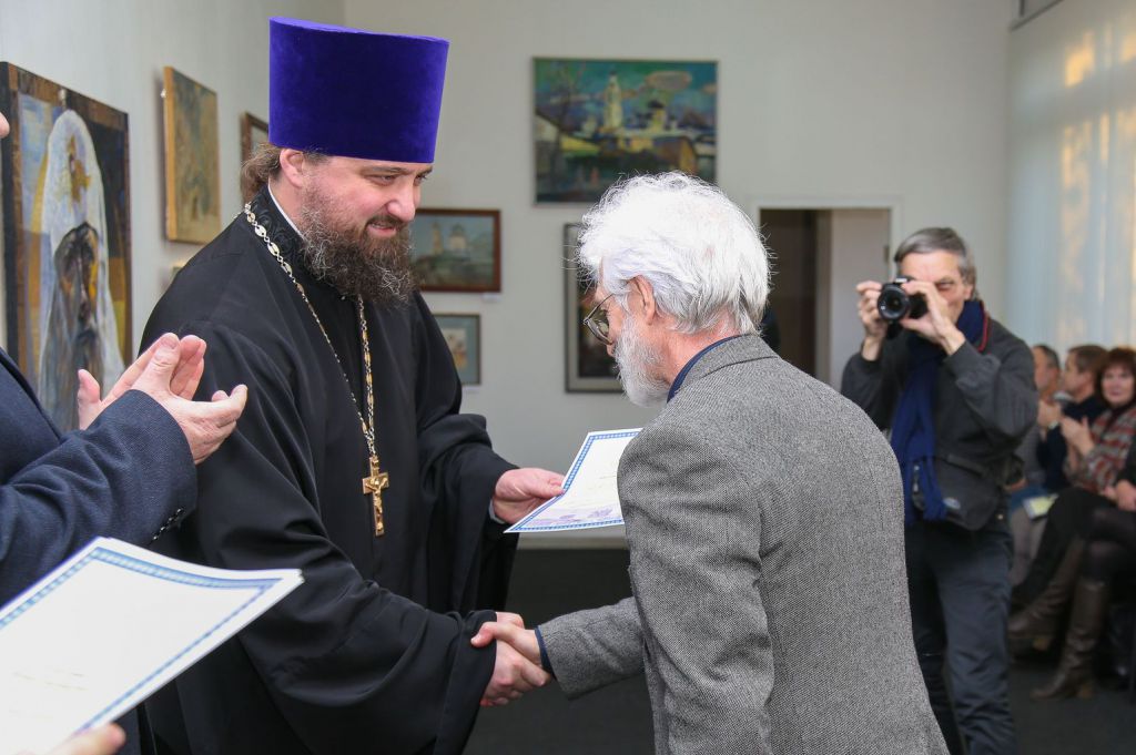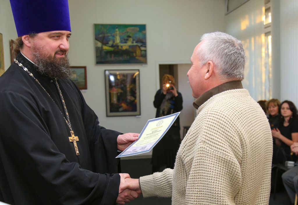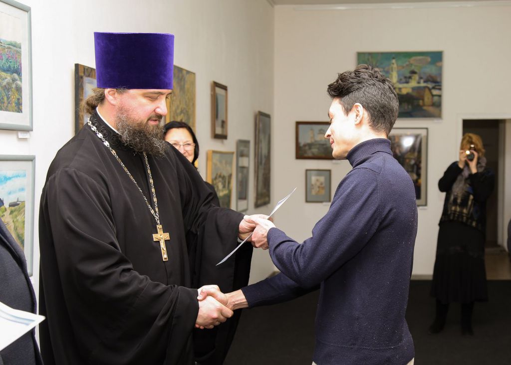 23 ноября в рамках Московских областных Рождественских образовательных чтений в Ногинском районном отделении Союза художников России состоялось открытие выставки работ, представленных на творческий конкурс «1917–2017: уроки столетия». С приветственным словом к собравшимся обратились благочинный церквей Богородского округа протоиерей Марк Ермолаев и заместитель главы администрации Ногинского района Валерий Виноградов.