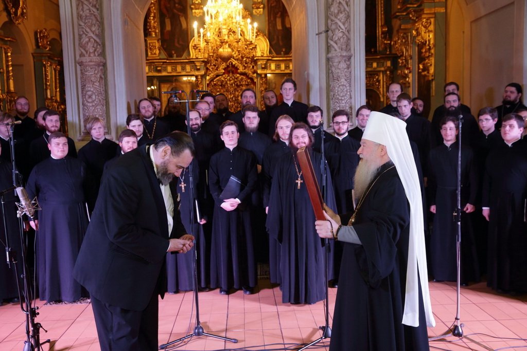 В ответном слове Владимир Маторин сказал: «Сердечное спасибо, дорогие братья и сестры, дорогие отцы. Под омофором Владыки создался этот выдающийся хор, который на моих глазах растет и набирает мастерство. Его особенность в том, что люди здесь не только поют, а искренне молятся. Это огромная духовная сила. Мне особенно приятно петь здесь, в этом святом для русского сердца месте, где намоленные иконы, намоленные стены. Но самое главное, что пришли люди, которые слушали с таким искренним вниманием, с такой сосредоточенностью, что пение стало совместным молением. Это дает огромный заряд духовных сил. Голосом петь просто, а вот так, чтобы вместе с хором молиться искренне и истово, стало возможно только благодаря Владыке митрополиту. Спасибо большое, Владыка».