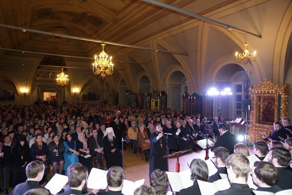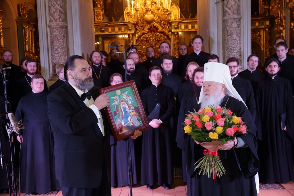 Собравшихся приветствовал митрополит Ювеналий: «Я очень рад, что Вы приняли наше приглашение провести этот вечер в стенах Новодевичьего монастыря. В десятый раз мы проводим вечер церковной и светской музыки с участием народного артиста России, солиста Большого театра Владимира Анатольевича Маторина. И сегодня он будет выступать вместе с прославленным в нашей Церкви Хором духовенства Московской епархии под управлением отца Сергия Голева.