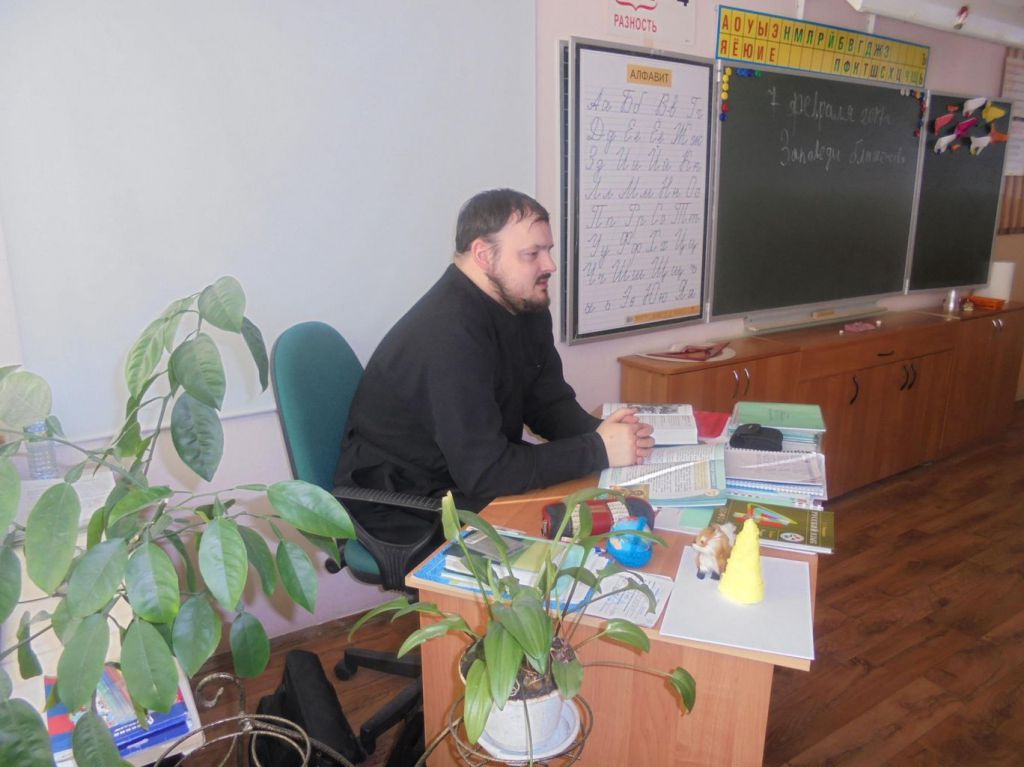 7 февраля в 4-м классе средней образовательной школы № 17 г. Орехово-Зуево в рамках курса «Основы православной культуры» состоялся урок, посвященный Заповедям блаженства, который провел миссионер-катехизатор Георгиевского храма г. Орехово-Зуево Е. А. Погорелов.