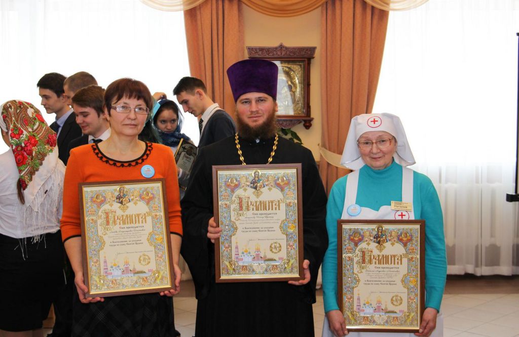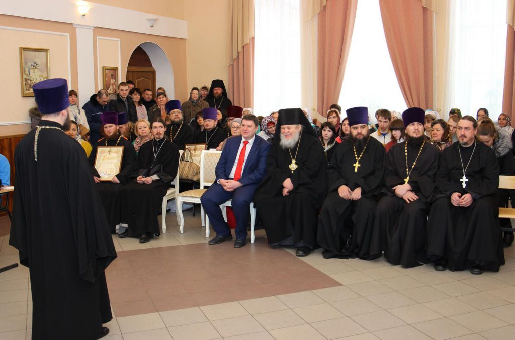 В духовно-просветительском центре собора Владыка Николай вручил благословенные грамоты митрополита Ювеналия руководителю общества трезвости священнику Иоанну Трохину и его помощникам, а также главному эксперту Орехово-Зуевского городского управления социальной защиты населения и координатору работы общества трезвости Л. В. Почитаевой. На праздничном акте перед собравшимися выступили благочинный церквей Орехово-Зуевского округа протоиерей Андрей Коробков, заместитель главы администрации г. Орехово-Зуево П. Н. Родин, специалист по социальной работе Московской областной психиатрической больницы № 8 г. Орехово-Зуево Т. В. Грашина. О работе общества трезвости в течение года рассказала Л. В. Почитаева. Творческими номерами гостей порадовали старшеклассники городской школы № 20, воспитанники Орехово-Зуевского городского социально-реабилитационного центра для несовершеннолетних, детская вокально-хоровая студия «София» при Богородицерождественском соборе.