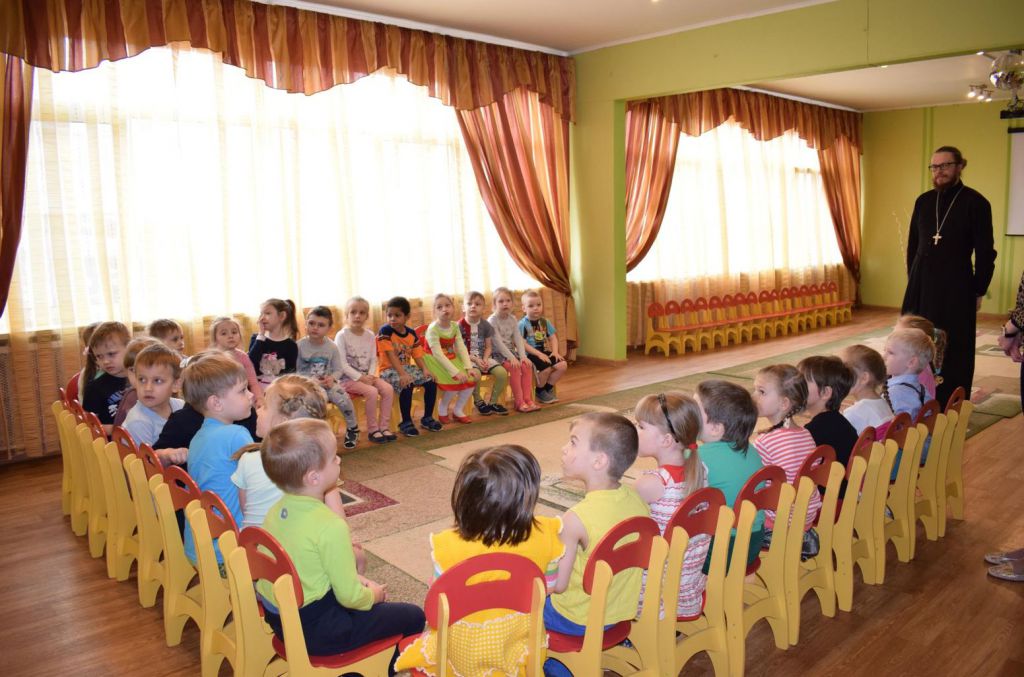 5 апреля в детском саду №16 г. Орехово-Зуево состоялась встреча ответственного за работу с молодежью в благочинии священника Димитрия Филина с воспитанниками. Отец Димитрий рассказал ребятам о духовном значении праздника Пасхи, о традициях, связанных с подготовкой к торжеству. Затем отец Димитрий обсудил с педагогами возможность введения курса православного воспитания в двух старших группах.
