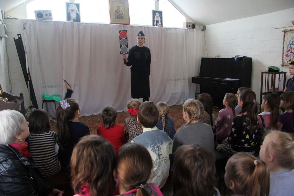 9 апреля ученики воскресной школы Иоанно-Богословского храма г. Ликино-Дулево встретились с госинспектором по пропаганде ОГИБДД МУ МВД России «Орехово-Зуевское» Московской области В.В. Панфиловой. Они получили информацию о правилах повеления на проезжей части. С помощью воспитанников социального приюта «Наш дом» и волонтеров была показана театрализованная постановка о правилах дорожного движения.