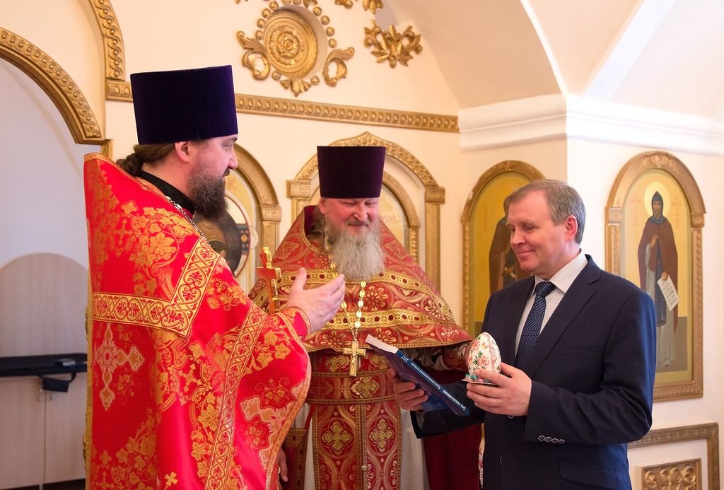 27 апреля благочинный церквей Богородского округа протоиерей Марк Ермолаев возглавил Божественную литургию в домовом храме святого благоверного князя Александра Невского в пансионате «Ногинский». На богослужении присутствовали начальник Ногинского управления социальной защиты населения Министерства социального развития Московской области Валерий Зайцев, директор пансионата «Ногинский» Юрий Панков, насельники пансионата, персонал учреждения. По окончании богослужения протоиерей Марк Ермолаев и протоиерей Валерий Немцов, настоятель Свято-Константиновского храма г.Ногинска, поздравили всех с Пасхой. Отец Марк подарил директору пансионата Юрию Панкову и начальнику Ногинского управления социальной защиты населения Валерию Зайцеву декоративные пасхальные яйца, изготовленные учениками православной гимназии имени сщмч. Константина Богородского, а также церковные календари.