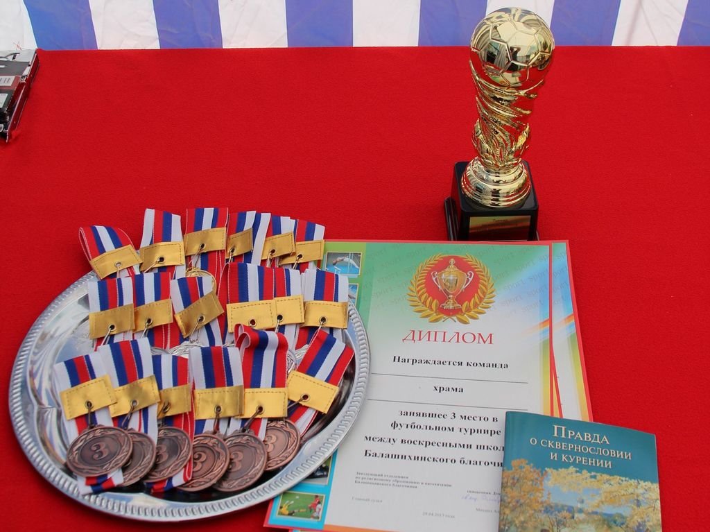 29 апреля на территории Преображенского храма мкр. Саввино прошел футбольный турнир между командами воскресных школ храмов Балашихинского благочиния. В турнире приняло участие восемь воскресных школ. Всем детям были вручены памятные медали и подарки. По окончании турнира на территории храма прошла акция «Лес Победы». В завершение турнира сборная детей воскресных школ сыграла товарищеский матч с командой духовенства Балашихинского благочиния.