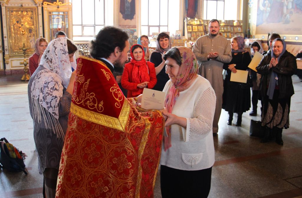 30 апреля в Богородицерождественском соборе г. Орехово-Зуево состоялся выпускной акт для слушателей Миссионерско-катехизаторских курсов Орехово-Зуевского отделения. По окончании благодарственного молебна, который возглавил благочинный Орехово-Зуевского церковного округа протоиерей Андрей Коробков, ответственный за религиозное образование и катехизацию священник Владислав Решетников вручил выпускникам свидетельства о присвоении квалификации «Приходской миссионер-катехизатор и работник с молодежью». Учащиеся, прошедшие полный образовательный курс, получили свидетельство о присвоении квалификации «Приходской социальный работник». По окончании акта в приходском духовно-просветительском центре состоялся праздничный концерт, подготовленный силами выпускников миссионерско-катехизаторских курсов.
