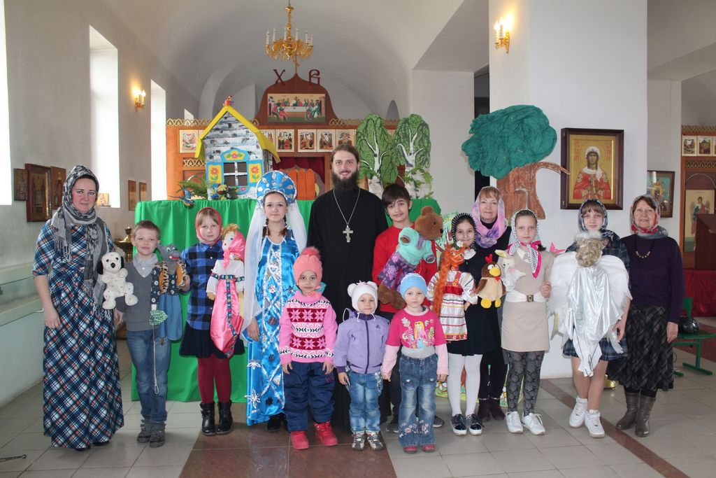 23 апреля театр кукол «Теремок» центра культурного развития «Юбилейный» показал праздничный спектакль в Троицком храме г. Дрезна. Священник Игорь Савелов поздравил прихожан с праздником и представил выступление кукольного спектакля.