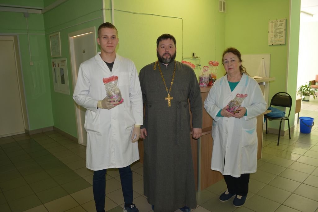 18 апреля настоятель Михаило-Архангельского храма деревни Давыдово священник Александр Мартынов посетил Давыдовскую районную больницу. Отец Александр поздравил с праздником медицинский персонал и пациентов.