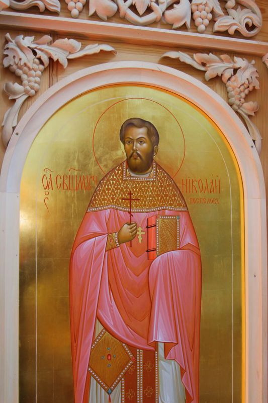 Священномученик Николай родился 28 февраля 1885 г. в селе Песьяны Владимирской губернии. С 1922 по 1930 гг. отец Николай служил в храме свт. Николая в селе Житенино Орехово-Зуевского района. Незадолго до того, как власти приступили к изъятию имущества у крестьян и священнослужителей, отец Николай продал свой дом под школу в соседнее село, а сам вместе с семьей перешел жить в дом просвирни. Отец Николай был ревностным пастырем, никому никогда не отказывал в просьбах, заботился о богослужебном чтении и пении. В 1930 г. сумма государственных налогов стала столь высокой, что отец Николай вынужден был продать все свое имущество и перейти служить в храм села Воскресенское Киржачского района, где незадолго перед этим арестовали служившего там протоиерея Димитрия Вознесенского. В 1931 г. отец Николай был направлен служить в Успенский храм в селе Воинова Гора Орехово-Зуевского района, в 1932 г. – в храм села Пустое Поле Шатурского района, а затем – в храм Чуда Архистратига Михаила в село Былово Подольского района. 27 января 1938 г. отец Николай был арестован. Три дня священник содержался при районном отделении НКВД, а затем был перевезен в Таганскую тюрьму в Москве. Через два дня после ареста состоялся допрос. В тот же день следствие было закончено. 8 февраля 1938 года тройка НКВД приговорила отца Николая к расстрелу. Протоиерей Николай Поспелов был расстрелян 17 февраля 1938 г. и погребен в безвестной общей могиле на полигоне Бутово под Москвой.