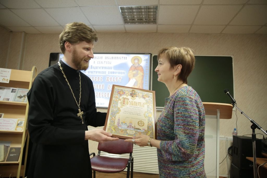 В этот день прошло награждение педагогов – победителей и призеров муниципального этапа предметной недели духовно-нравственной культуры. Благословенными грамотами митрополита Ювеналия были отмечены усердные труженики на ниве духовно-нравственного воспитания детей и молодежи.