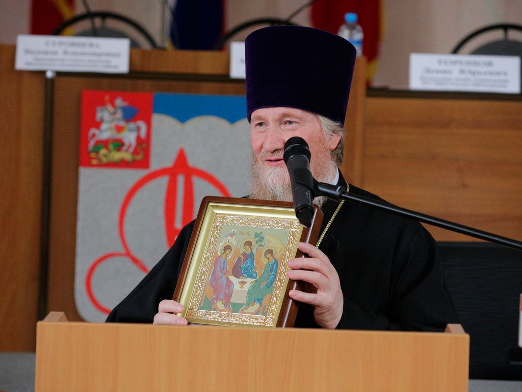 1 июня состоялась торжественная церемония вступления в должность главы Щелковского района Алексея Валова. От имени митрополита Ювеналия благочинный церквей Щелковского округа протоиерей Андрей Ковальчук поздравил А.В. Валова и председателя районного совета депутатов Н.В. Суровцеву и преподнес им икону Пресвятой Троицы и Евангелие.
