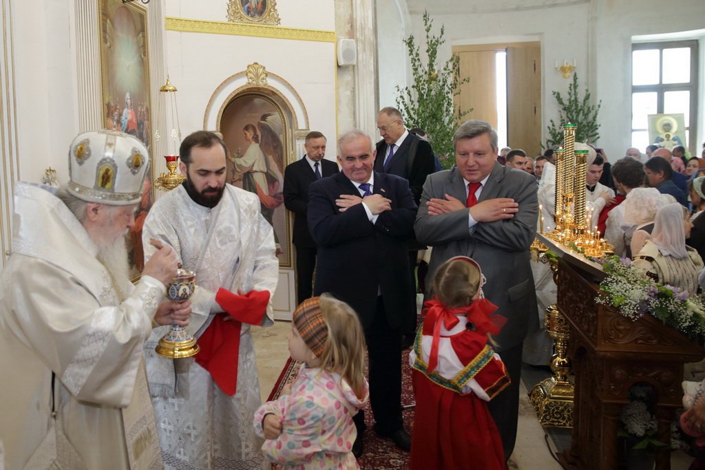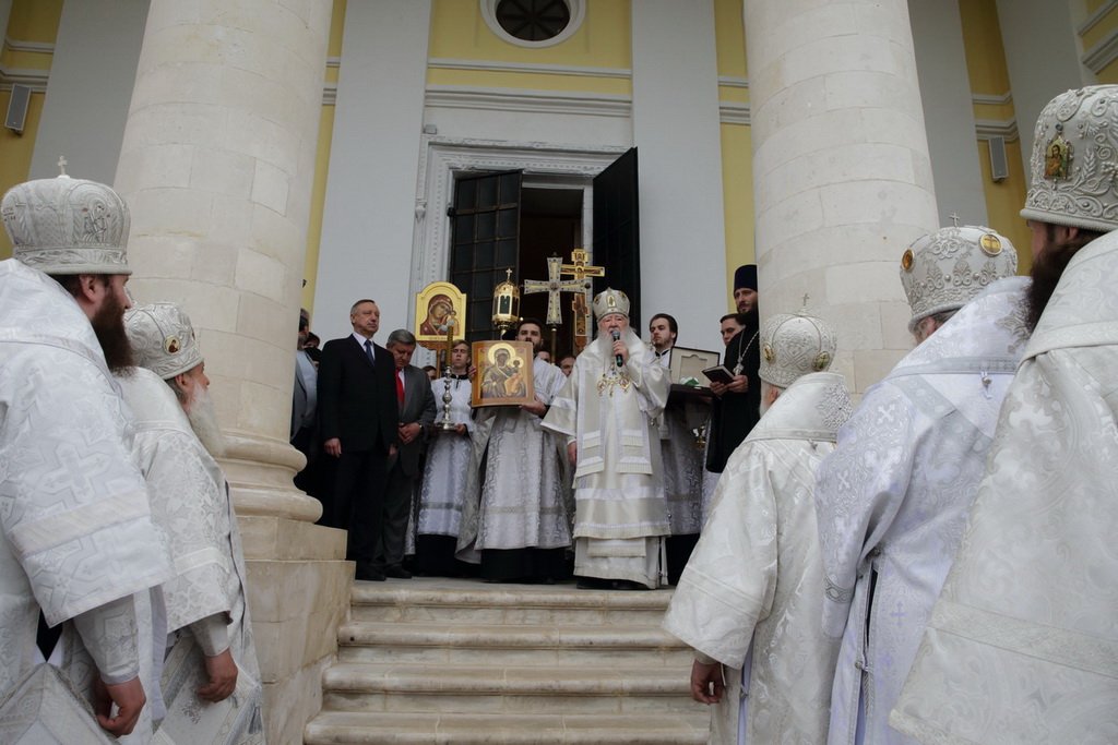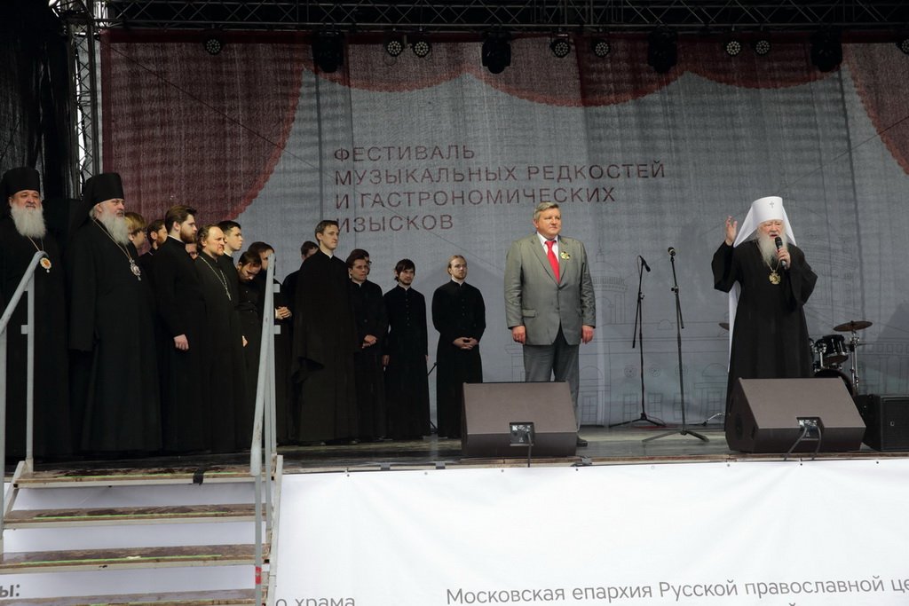 Затем на площади перед храмом состоялся праздничный фестиваль. К участникам фестиваля с архипастырским словом обратился митрополит Ювеналий: «Дорогие и возлюбленные братья и сестры. Мы сейчас оказались под воздействием непогоды. Но что это по сравнению с тем, что шестьдесят лет здесь храм находился в поругании. Мы не могли здесь молиться, мы не могли здесь крестить и воспитывать детей. Прошли эти мрачные десятилетия. Нам передали этот храм, однако, что может сделать горстка людей, тружеников бедных, чтобы восстановить такую святыню. Если бы не нашелся один святой человек в лице Николая Павловича, наверное, и сейчас вы не переступили бы порог этого храма. Много нужно было сил, средств, усилий, чтобы за три коротких года открыть эту святыню для православных людей. Я преклоняюсь перед вашим подвигом, дорогие братья и сестры! Благодарю вас, что после богослужения остались с нами, чтобы почтить тех, чьими руками и личными средствами осуществлялась реставрация. Всех их вдохновил наш любимый Николай Павлович. Святейший Патриарх Кирилл очень высоко оценил его подвиг, удостоив ордена Русской Православной Церкви преподобного Серафима Саровского I степени.