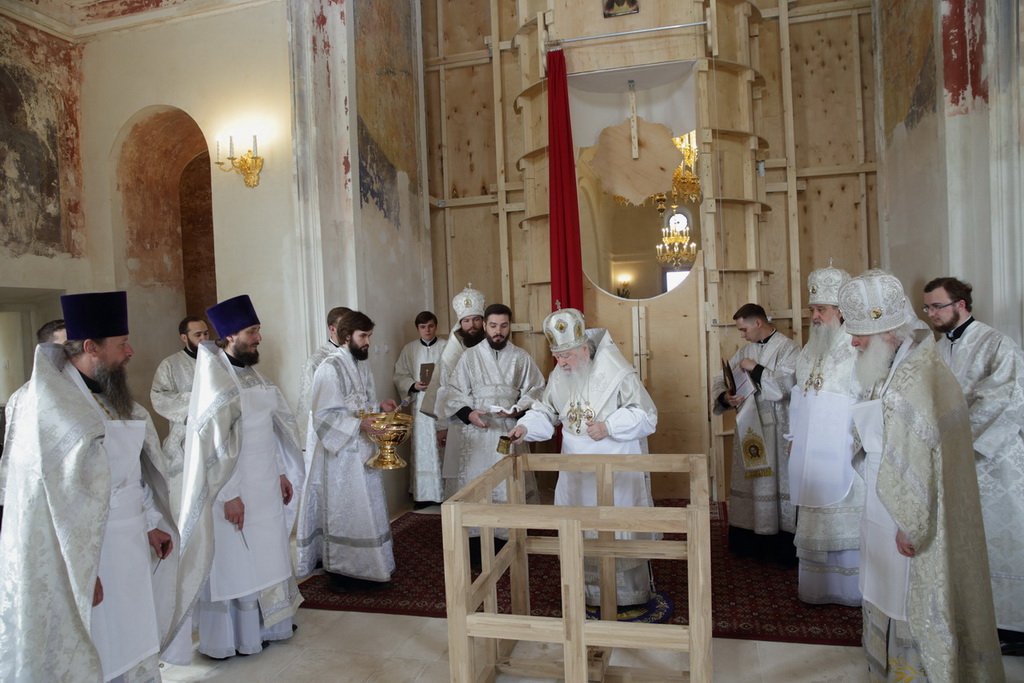 За богослужением пел хор Коломенской духовной семинарии под управлением диакона Николая Глухова.