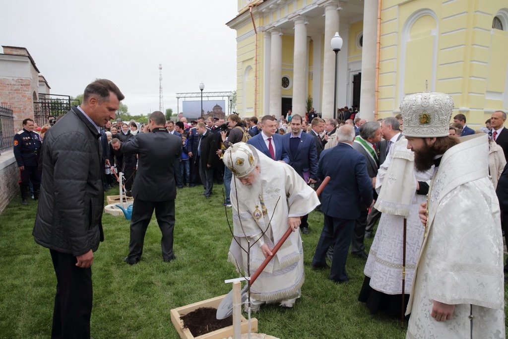 Владыка митрополит и А. Д. Беглов приняли участие в акции по восстановлению утраченного в советскую эпоху церковного сада при Свято-Духовском храме и посадили первые деревья.