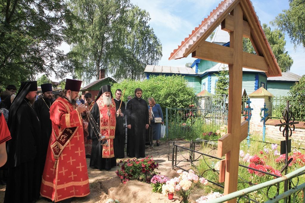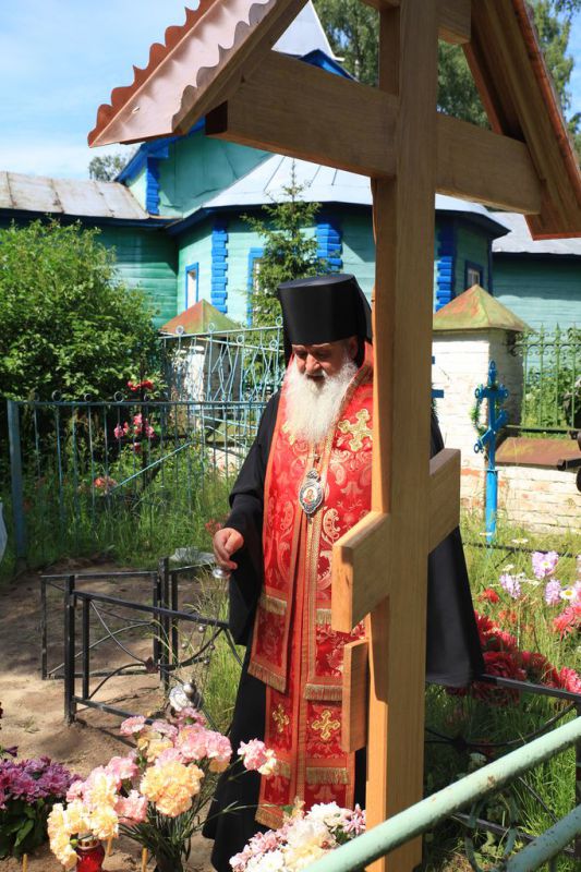 Затем Его Преосвященство совершил заупокойную литию на могиле новопреставленного протоиерея Василия Литвиненко, который с 1980 по 2015 гг. являлся настоятелем Рудненского храма и был погребен за Христорождественским зимним храмом на подворье монастыря.