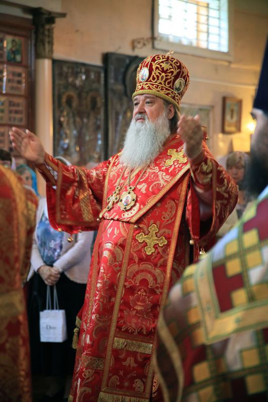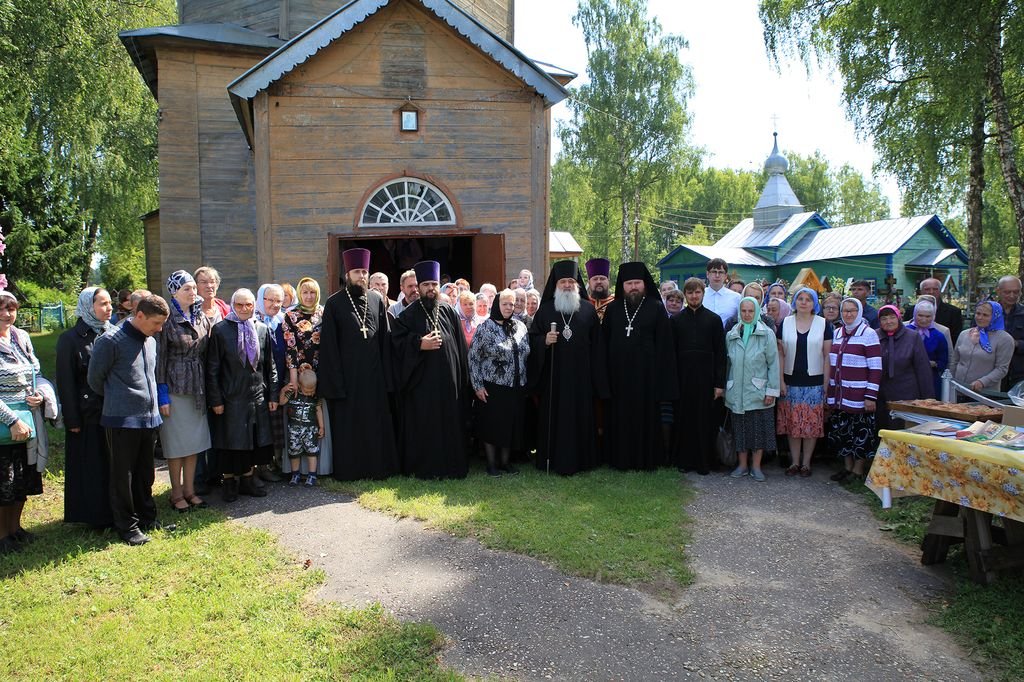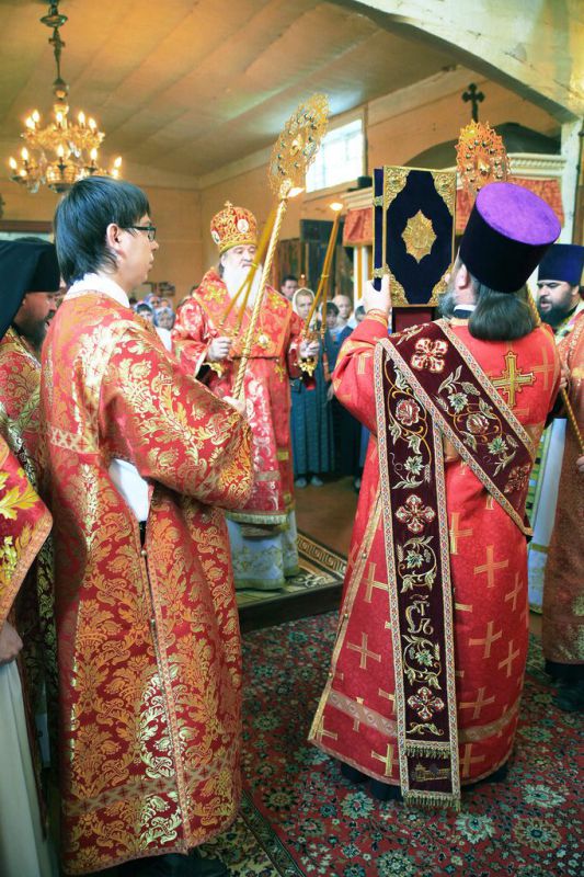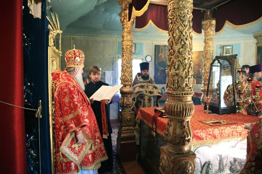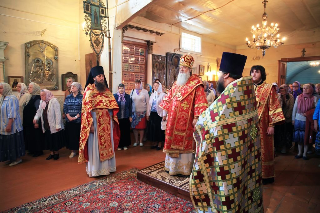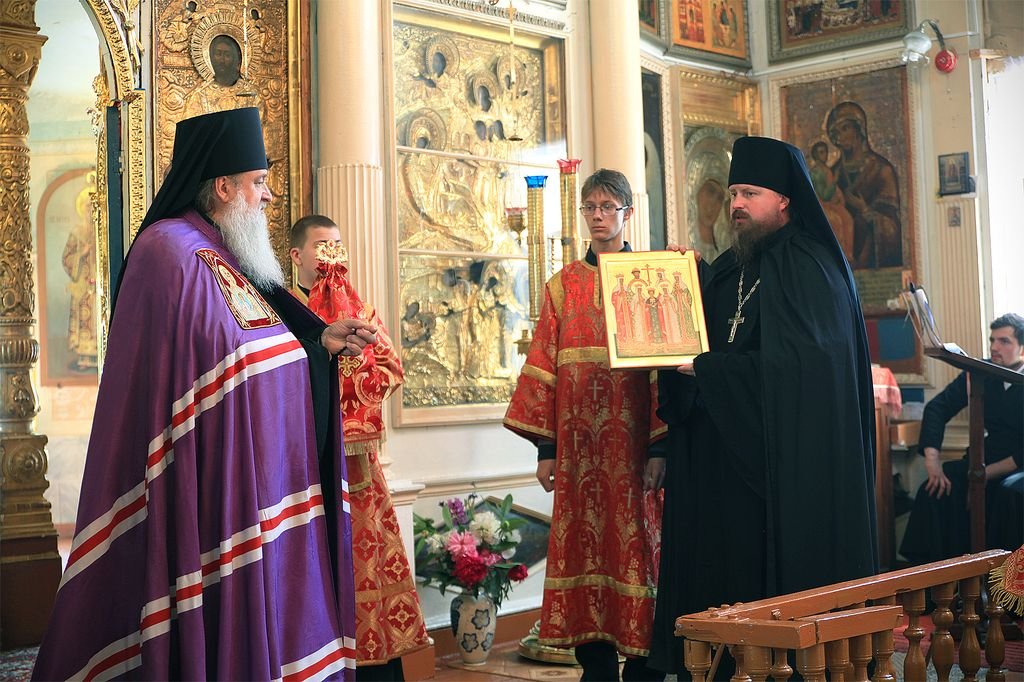 По окончании Литургии было совершено славление священномученику Павлу Успенскому. В приветственном слове игумен Серафим кратко рассказал об истории незакрывавшегося в советские годы Рудненского храма, о репрессированных и прославленных священнослужителях храма: 5 священников и 4 церковнослужителя Рудненского храма в 1930-е годы были репрессированы и расстреляны, двое из них были прославлены в лике святых. На память о посещении подворья и богослужении Владыке была приподнесена икона святых царственных страстотерпцев, написанная в иконописной мастерской Гуслицкого монастыря. Владыка Роман в своем слове раскрыл духовное значение подвига новомучеников, поблагодарил игумена монастыря и благотворителей за помощь, а также передал всем собравшимся благословение митрополита Ювеналия.