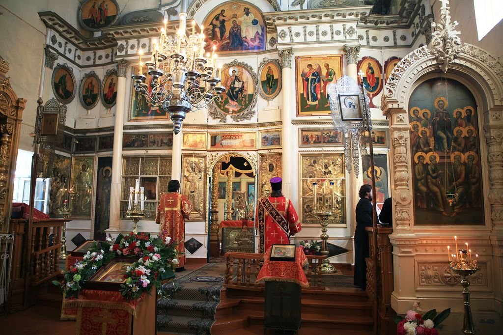 Богослужебные песнопения исполнял мужской хор Московской духовной академии.