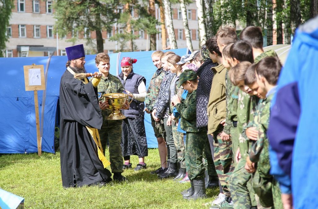 На церемонии торжественного открытия клирик Богоявленского собора Ногинска протоиерей Олег Волков отслужил молебен и благословил участников лагеря. Под гимн России были подняты два флага: Российской Федерации и Андреевский. Затем инструкторы познакомили детей с программой лагеря. На открытии выступил заместитель командира 282-го Учебного Трансильванского Краснознаменного ордена Александра Невского центра войск радиационной, химической, биологической защиты подполковник Евгений Ермоченко.