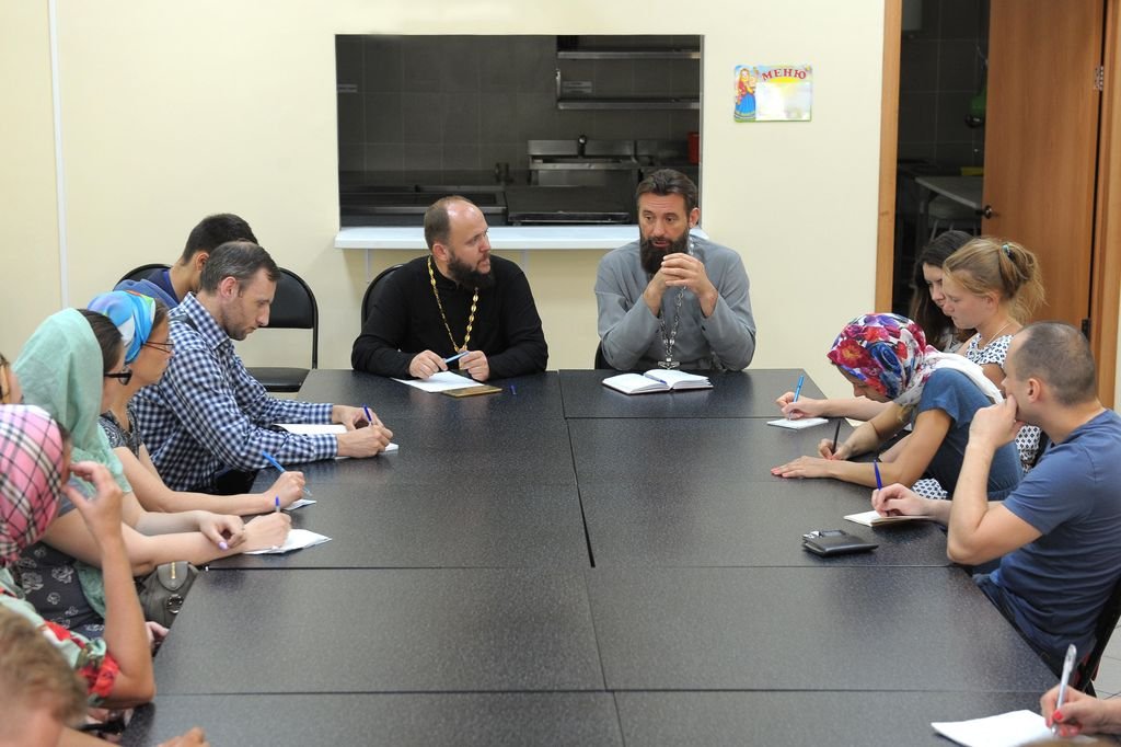 6 августа в трапезной церковно-приходской школы Воскресенского храма г. Павловского Посада состоялась встреча благочинного Павлово-Посадского церковного округа протоиерея Александра Хомяка и ответственного в благочинии за работу с молодежью, настоятеля Воскресенского храма священника Александра Кувшинникова с приходскими молодежными лидерами. Встреча была посвящена планированию совместных мероприятий до конца 2017 года, а также празднованию дня памяти новомучеников и исповедников Павлово-Посадских. Были выработаны основные направления совместной подготовки – организация просветительской выставки и волонтерская помощь.