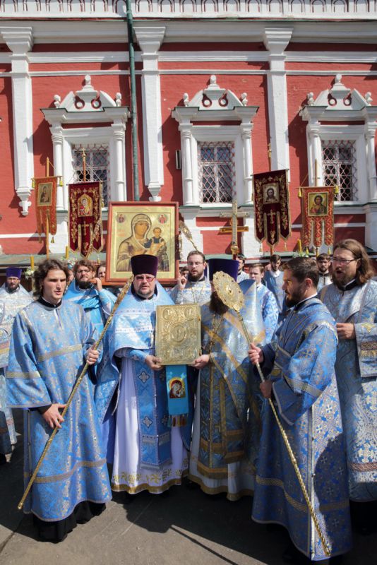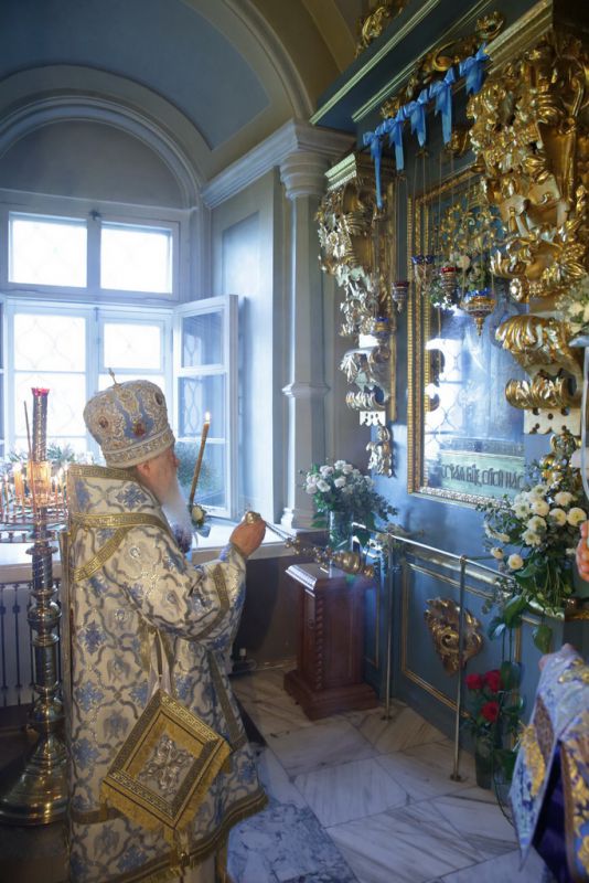 В конце праздничного богослужения вокруг Успенского храма состоялся крестный ход, после которого митрополит Ювеналий обратился к собравшимся с архипастырским словом: «Дорогие и возлюбленные о Господе! В моем сердце сейчас огромная радость — я давно уже не видел наполненным этот святой храм нашими дорогими прихожанами. Сегодня вы почтили день Пресвятой Богородицы. Я верю, что Ее предстательством пред Господом будут исполнены ваши прошения. Почитание иконы Божией Матери относится к глубочайшей древности. Существует предание, что первый образ Пресвятой Богородицы по просьбе антиохийского правителя Феофила написал святой апостол и евангелист Лука. Матерь Божия, увидев это изображение, сказала: „С этим изображением да пребудут Моя благодать и сила“. Опыт Церкви показывает, что с тех пор до сегодняшнего дня через иконы Пресвятой Богородицы источаются чудеса и милости роду христианскому. Пресвятая Богородица, когда посещала Свою родственницу Елисавету в Иерусалиме, в Духе Святом воскликнула: „Отныне будут ублажать Меня все роды“ (Лк. 1:48). На самом деле: люди разных национальностей и во все времена чтут Пресвятую Богородицу, а Она источает Свою милость через Свои священные изображения. Мы знаем бесчисленное множество наименований икон Божией Матери, через которые совершаются эти чудеса. А для нас очень близок Смоленский образ, именуемый „Одигитрия“, что в переводе с греческого означает „Путеводительница“. О каком же пути идет речь? О жизни нашей, дорогие братья и сестры. Потому что во всех бедах и напастях мы прибегаем к Ней, испрашивая Ее материнского благословения и помощи. Эта икона прославлена и как знамя победы для России и нашего народа. Поэтому так радостно на сердце, что и вы все, отложив земные попечения, прибыли в нашу древнюю обитель, чтобы испросить благословения и милости Пресвятой Владычицы нашей Богородицы. Я верю, что с материнской любовью взирает Пресвятая Дева на каждого из нас и испрашивает у Сына Своего и Бога нашего Иисуса Христа исполнения ваших молитв.