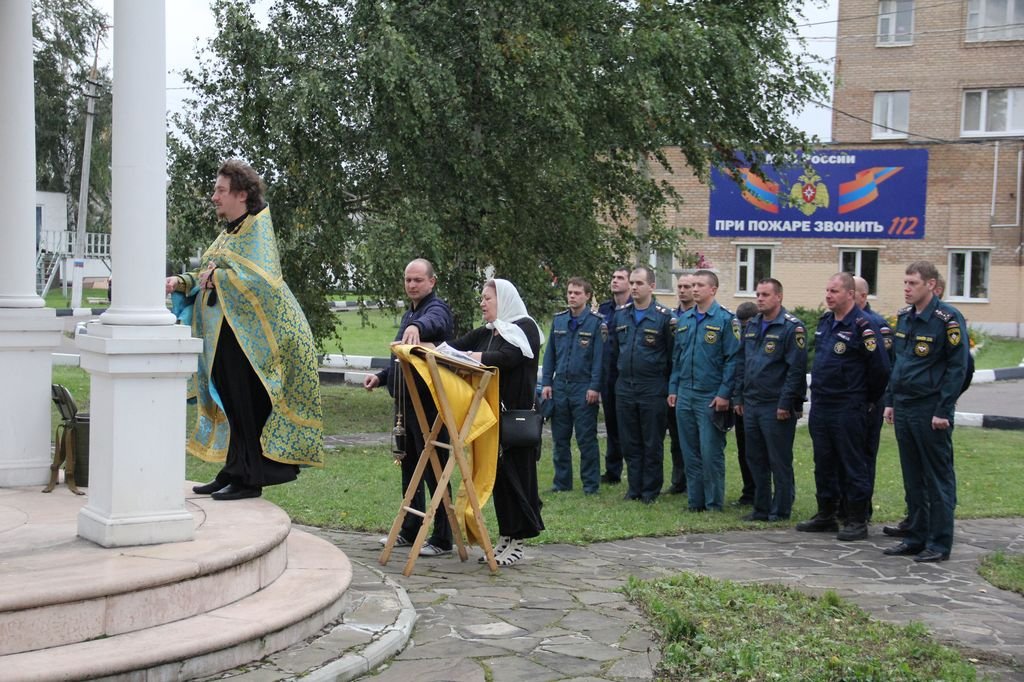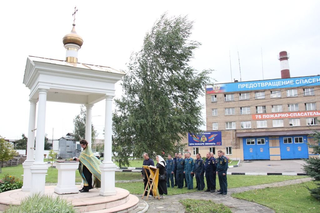 15 сентября, накануне праздника иконы Божией Матери «Неопалимая Купина», настоятель Троицкого храма деревни Павлино иеромонах Лазарь (Беломоин) совершил водосвятный молебен в 75-ой пожарно-спасательной части городского округа Балашиха и поздравил личный состав с празднованием чтимого образа.