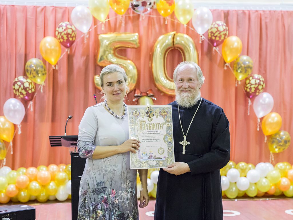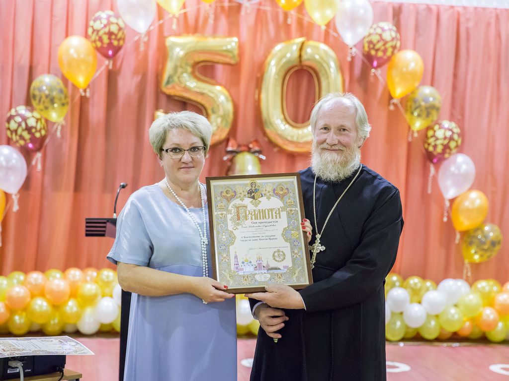 20 октября щелковская средняя школа № 16 праздновала 50-летний юбилей. Педагогический коллектив школы пришли поздравить депутат Московской областной думы В.Н. Шапкин, председатель совета депутатов Щелковского района Н.В. Суровцева, заместитель главы администрации Щелковского района Ю.Н. Радионов, председатель комитета по образованию Щелковского района Г.Б. Поляковский, благочинный Щелковского церковного округа протоиерей Андрей Ковальчук. Отец Андрей поздравил коллектив и учащихся школы с юбилеем и вручил Благословенные грамоты митрополита Ювеналия директору школы О.Н. Курьяковой и заместителю директора по учебно воспитательной работе И.П. Евтишенковой. Торжественное мероприятие продолжил концерт, подготовленный творческими коллективами и выпускниками школы.