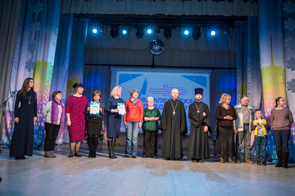 17 декабря в Щелковском районном культурном комплексе прошел IХ Открытый районный фестиваль-конкурс духовной музыки и декоративно-прикладного творчества «Вифлеемская звезда-2017». На сцене выступили детские и клиросные хоры, фольклорные ансамбли и солисты, театральные студии и воспитанники школы искусств. В конце фестиваля жюри, в составе которого находились клирик Иоанно-Предтеченского храма поселка Фряново священник Алексий Рукавицын, клирики Троицкого собора г. Щелково священники Евгений Трушин и Димитрий Медведев, определило лауреатов и номинантов конкурса. Все творческие коллективы получили почетные грамоты. Были награждены также участники конкурса декоративно-прикладного творчества, работы которых были представлены в фойе районного дворца культуры.