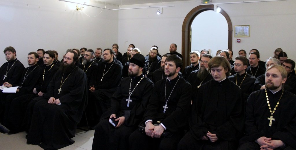 8 февраля в актовом зале Троицкого храма г. Реутова состоялся пастырский семинар для духовенства Балашихинского благочиния на тему «Священное Писание Нового Завета». В семинаре принял участие преподаватель кафедры библеистики Московской духовной семинарии протоиерей Андрей Рахновский, секретарь экзаменационной комиссии Епархиального совета г. Москвы. Отец Андрей детально разобрал отдельные места соборных посланий апостолов и ответил на вопросы духовенства.