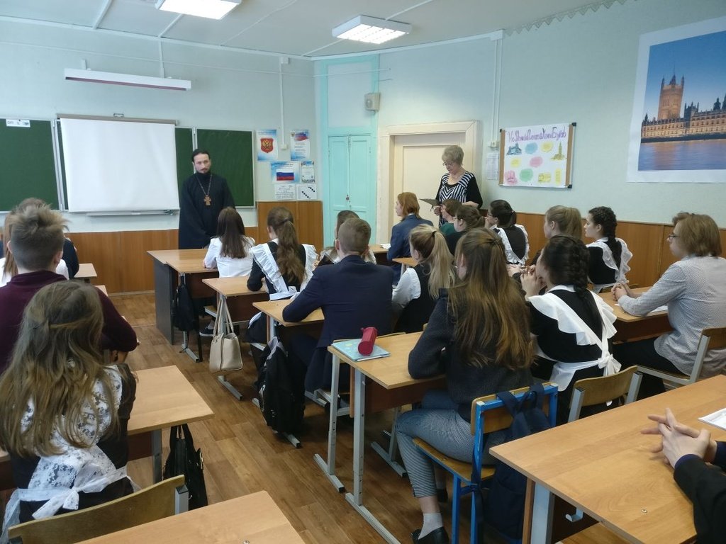 14 марта открытый урок в школе №4 г. Шатура посетил благочинный округа священник Владислав Решетников. На мероприятии присутствовала начальник управления образования Наталья Веселова.