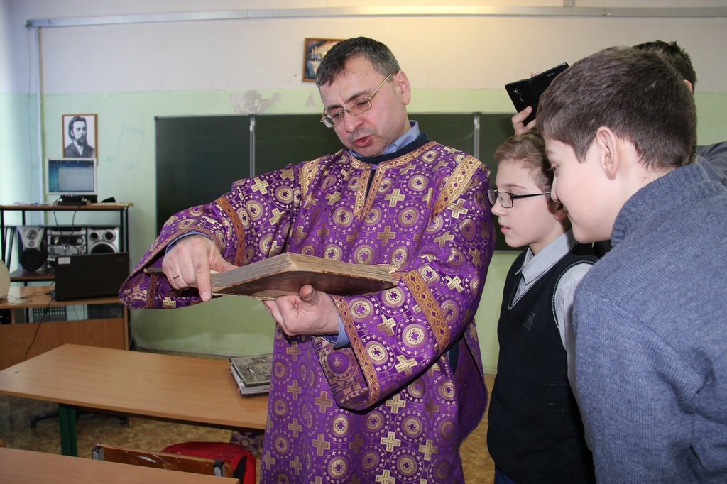 12 марта настоятель Николо-Архангельского храма г. Балашихи священник Михаил Куземка провел беседу в средней школе № 21 г. Балашихи о первопечатнике диаконе Иоанне Федорове и о современных православных книгах.