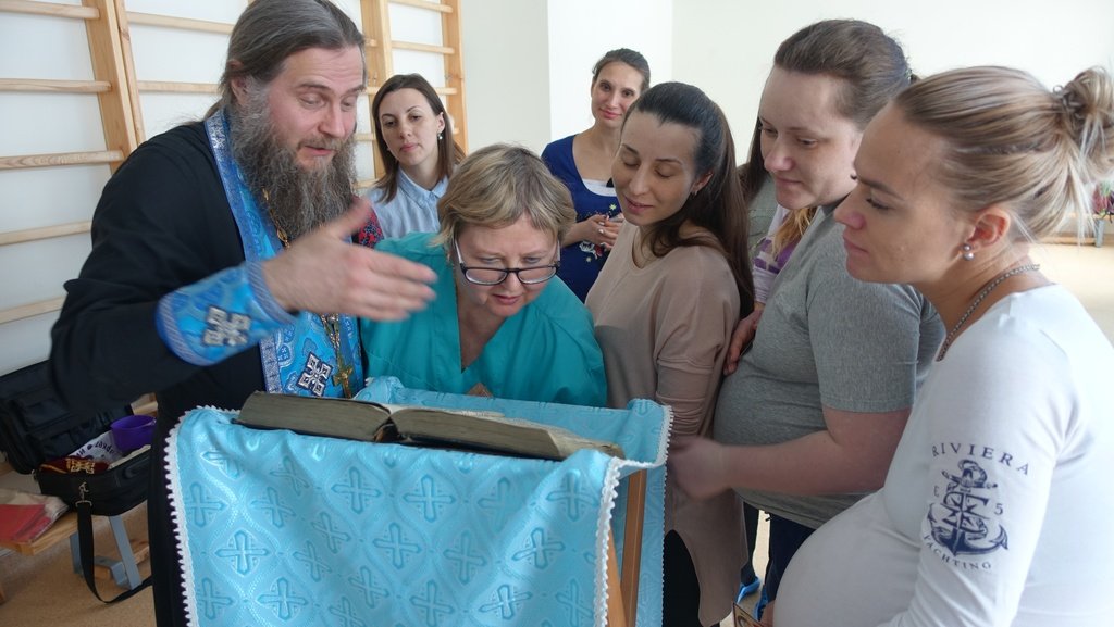 14 марта в Балашихинском роддоме настоятель Преображенского храма мкр. Саввино г.о. Балашихи протоиерей Виталий Кулешов провел с роженицами и медицинским персоналом беседу об истории возникновения книгопечатания на Руси и познакомил их со старинными богослужебными книгами.